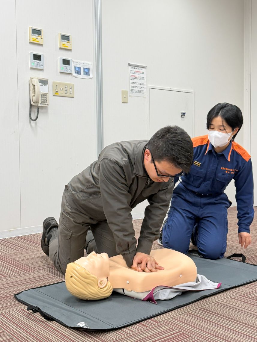 今年度は、仙建工業株式会社 盛岡支店杉山部長様から重大事故からの安全指導。個人ワーク日常生活でも起こりえる危険予知。住友生命様からの健康管理セミナーとIn Bodyという機器を用いた自身の体の状態の把握。鹿角広域行政組合消防本部様指導の下心肺蘇生法・AED取り扱い、止血法(熊対策)を行いました。