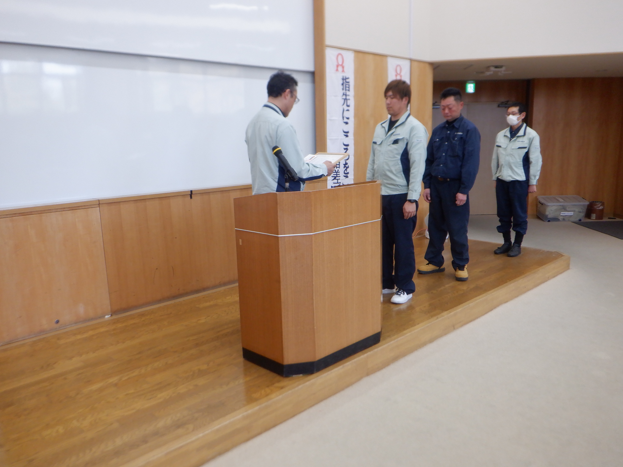 令和7年度の安全大会を開催するにあたり、令和8年度に切り替わる年度末であるため、新年度へ向けて安全祈願を全社員で実施後、移動して安全大会を開催いたしました。