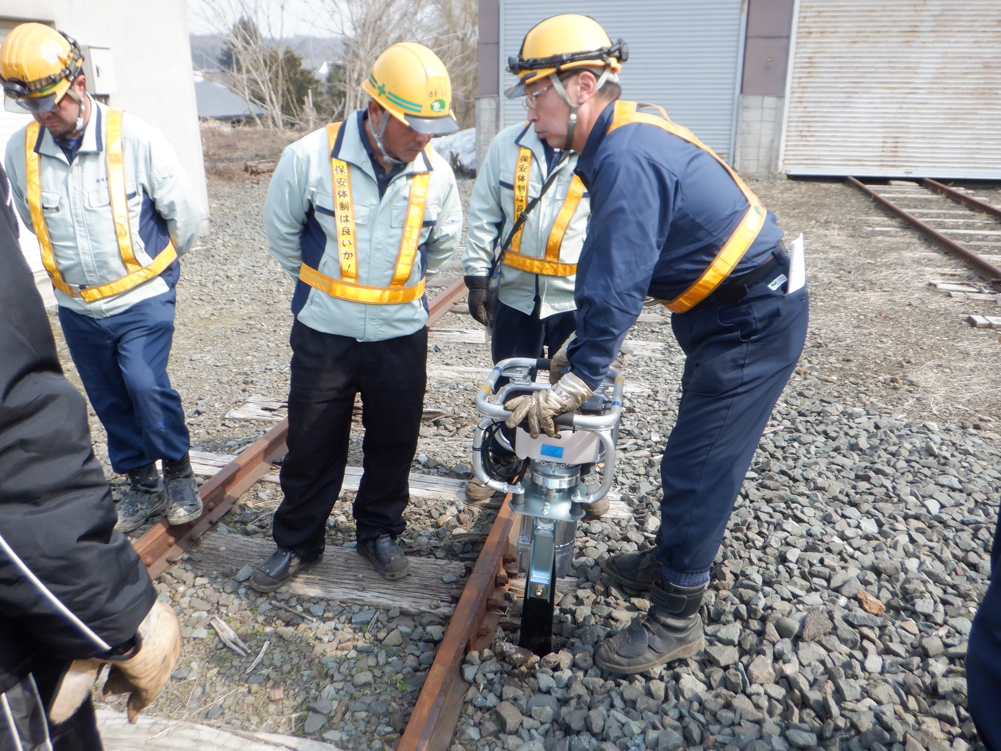 午後は、線路立ち入り時退出時の訓練のほか、山崎歯車製作所様より、レール切断における注意点(曲がって切れないためのポイント)、レール穿孔機における注意点をご指導していただき、令和8年度に向けて安全意識と技術向上を図ることができた大会となりました。